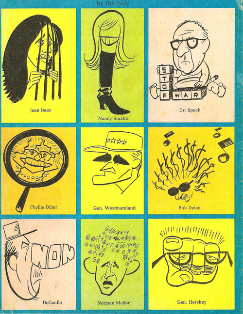 stunning caricatures, done for Sick magazine, June 1968), and his book incorporates that principle on