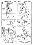 light-box under the student’s Noel Sickles, Milton Caniff’s great friend, worked for Landon for six months soon after graduating from high school and nearly went nuts. Said he (quoted in the IDW Sickles book): “What a gold mine that school was. I still think of that thing. It was amazing. Every day C.N. would open envelopes ... anywhere from 20 to 30 a day, with a check [inside each of them]. ... I was the guy correcting the homework of the students mailed in from all over the country. That was boring as hell because all you did was trace Landon’s drawing down the side of the student’s drawing to show him how to do it. It was Landon’s way of how to do it but an excellent way.” Here are a couple more Landon Plates; the advice offered thereon is excellent, as good today as it was in 1922.