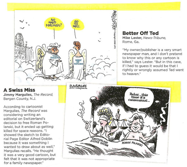 gallery of half-a-dozen editoons “deemed by editors to be too ‘hot’ to run.”