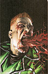 When I was cobbling up the Hindsight report last month on the fearsome Iron Jaw of Gleason’s Golden Age Boy Comics, I didn’t realize that this brute who made a comic book career out of returning from the dead had done it again: in January 1992, a villainous character called simply Jaw showed up in the inaugural issue of James Bond Jr. Same scenario—youthful crimebuster and hulking monster with metallic mandible. I ran across the first issue during one of my periodic prowls of flea markets, and there was old Iron Jaw himself on the cover. See for yourself. James Bond Jr. ran for another 11 issues until the end of the year; dunno if “Jaw” returned after his parachute accident in the No. 1, but my guess he did.