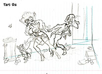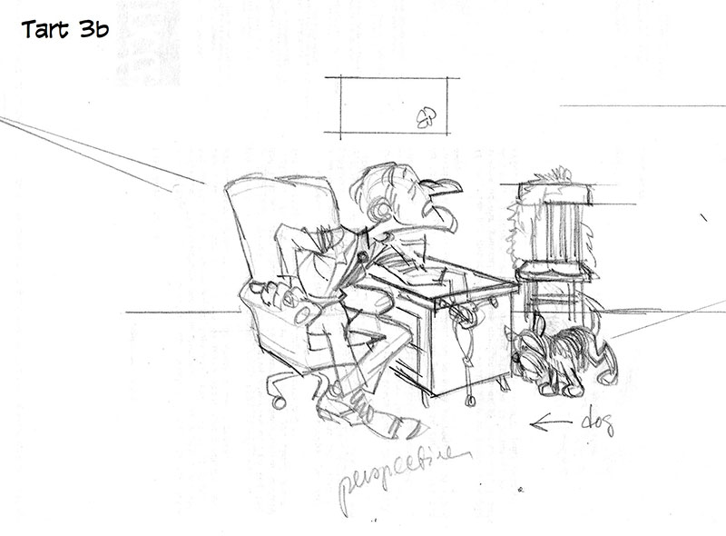 in the gag’s progress show up on the left side of the rough, Tart-19a. I toyed