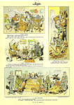 And speaking of footsteps to follow, we come to Eugene Zimmerman, the great Zim of Judge magazine fame. Zim was one of the giants of early (pre-newspaper comic strip) American cartooning, close on the heels of Thomas Nast, the revered father of American graphic editorializing, and Joseph Keppler, another of the patron saints of political cartooning albeit not quite so revered. Keppler had founded Puck, a weekly humor and political satire magazine, in 1877, and six years later, he hired Zim, but after two years, Zim left to join the staff of Judge and spent most of his active professional life there with Keppler's rival. An autobiography of Zim surfaced in 1988: published by something called Susquehanna University Press (or maybe it's Associated University Press, the title page bristles with competing possibilities), Zim is a fascinating but too brief volume (a mere 136 or so 8.5x11-inch pages). Apart from retailing many of the details of Zim's life, the book's interest lies in two areas, chief1y—neither of which would have been intended by the author. First, Zim's account of his youth offers shocking insights into the life of a poor immigrant boy in the last century. Born in 1862 in Basal, Switzerland, Zim was left there with relatives when his mother died two years later, his father, a baker, journeying to the United States to find work. Zim finally reached these shores at the age of seven. (His arrival, he says, was a surprise to his father!) At first he labored with his father in a bakery, and although he attended school until he was about twelve, he worked, too, at every available opportunity. At the age of twelve, he left the bakery for the more appealing outdoor work he found as a chore-boy on a farm. For the next three or four years, the youth worked for room and board and hand-me-down clothing. No monetary recompense at all. No wonder we needed child labor laws. At fifteen, Zim, who had always done a certain amount of drawing, attracted the attention of a passing sign painter, who took him on as an apprentice (in exchange for a bed and three meals and cast-off clothing again; no salary). His artistic career was thus launched. The same year, Puck began publication. By the early l880s, Zim was painting signs in Elmira, New York, and had seen enough of Puck to know he wanted to be a comic artist. In 1882 while visiting relatives in New York, he was persuaded to leave a portfolio of his work with them which they showed to Keppler. And Keppler was sufficiently impressed to ask that Zim come to town for an interview. He was hired for three years at $5 a week in May 1883. His career as a cartoonist was underway. A second area of unusual interest can be found in the well-intentioned but naive comments of the book's editor and compiler. William M. Brasch performed a heroic task in consolidating three autobiographical accounts that were found in Zim's papers, reconciling conflicting assertions and interspersing editorial commentary to provide social and historical context for Zim's narrative. All this is to the good. But Brasch begins to venture beyond his capacity as a scholar and historian when he turns to the racism and bigotry that Zim's drawings embody in their gross comic caricatures of Blacks, Jews, and the Irish. These cruel stereotypes were the common coin of comedy until well into the twentieth century. And Zim minted no new medium of humorous exchange when he depicted, as he frequently did, persons of these heritages in comic exaggeration. He was doing what nearly all his colleagues did. Writing in the 1930s, Zim comments on this practice: “Forty or fifty years ago the comic papers took considerably more liberty in caricaturing the various races than they do today. Jews, Negroes, and Irish came in for more than their share of lambasting because their facial characteristics were particularly vulnerable to caricature.” That's how he explained his racist pictures to himself: their faces were funny enough in nature to be even funnier if caricatured. This is a cartoonist talking, not a racist. It's a man looking for comedy. And he's looking in places where the show business of his age also looked: in vaudeville and minstrel shows, Blacks and Jews and Irishmen were often figures of fun. Zim is very much a man of his times (he could scarcely be a cartoonist otherwise), and in his day, racism was so much a fact of ordinary life that many were not even aware that they were racists. In short, Zim was no more racist than any other white person of his time. Which is another way of saying that they were all racist. But they probably didn't realize it. Many white folks didn't. They were blind to their faults. A not uncommon failing. Even today. The book includes a sampling of Zim's work in this arena. No, I don't think the sense of humor displayed in these vicious caricatures is praise-worthy. Nor do I intend by publicizing the existence of this volume to prolong the vitality of the stereotypes Zim's cartoons trade in. Those of the politically correct persuasion who chance upon these pictures will be appalled, of course. And well they should be. We all should be. But hiding the pictures in the closet denies that they ever existed. Not only would we be denying our past, we would be denying the evil in our past. We would be misrepresenting our history, lying about ourselves. And if we do not occasionally recollect the things we did of which we are now ashamed, we will not be equipped to avoid repeating the same sins in the future. "He who knows only his generation remains always a child." Upon this principle is founded all of the Jewish Holocaust literature and liturgy. Brasch, who tells us that he is a member of one of the ethnic groups Zim depicts so grossly, sounds a somewhat apologetic note in his Introduction as he searches for some explanation for Zim's heavy reliance on racial stereotypes in his cartoons. It's as if he hopes to uncover something that will excuse Zim's racism. Nothi