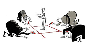 dangers of red-lining.” Too many red lines make that box we’re trying to avoid. Telnaes co-presenter, Signe Wilkinson (who, like Telnaes, is a Pulitzer-winning editoonist), agreed: “Each group has something sacred. The question is whether we can let each group decide for everyone else what is sacred. And if we do, we will not be drawing [editorial] cartoons.”